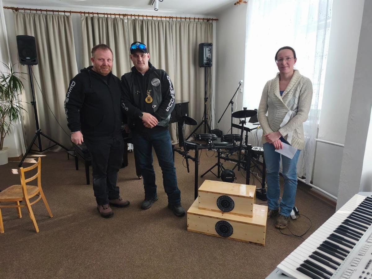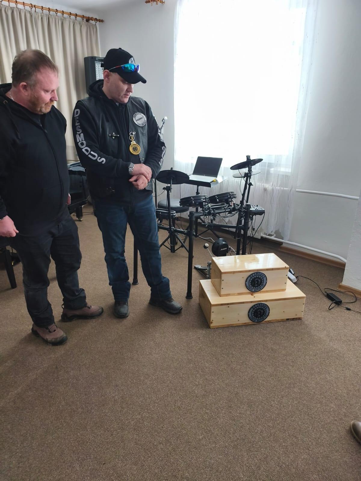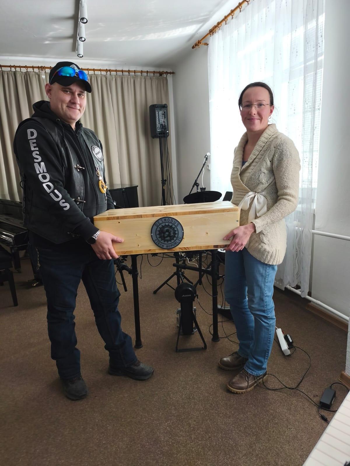 Dne 23.ledna 2026 převzala paní ředitelka od pana Fillause a pana Chocholáčka, členi motoklubu Desmodus, dva podstavce pod pedál k bicí soupravě pro výuku mladších záků. Tímto motoklubu Desmodus a všem jejich členům děkujeme.